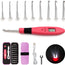 Set Crochet digital  viene con 9 ganchillos de acero que son intercambiables y están marcados individualmente para su comodidad. El mango es recargable con una batería de larga duración (7-9 horas) y un tiempo de carga rápido (15 minutos)